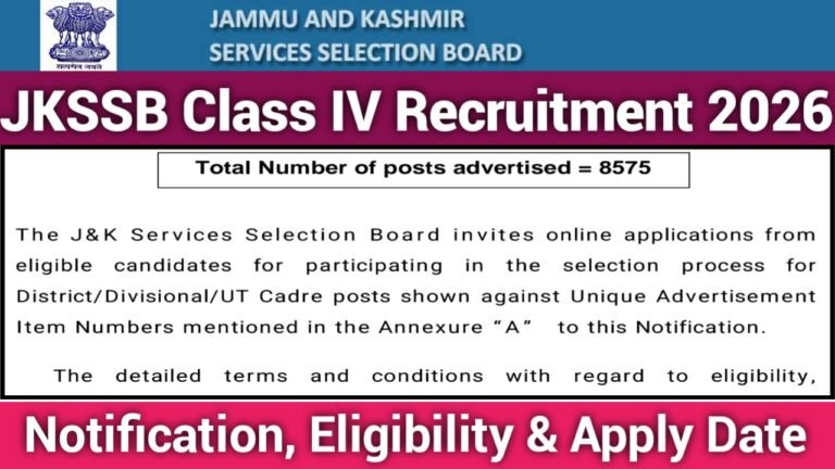 JKSSB Class IV Recruitment 2026 Notification, Eligibility & Apply Date