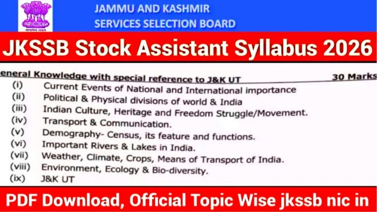JKSSB Stock Assistant Syllabus 2026 Download PDF, Subject Wise Topics