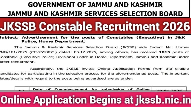 JKSSB Constable Recruitment 2026 Online Application Begins at jkssb nic in