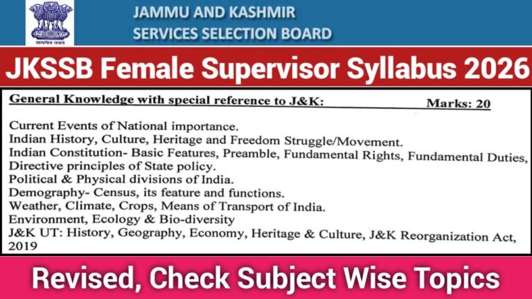 JKSSB Female Supervisor Syllabus 2026 (Revised) Check Subject Wise Topics