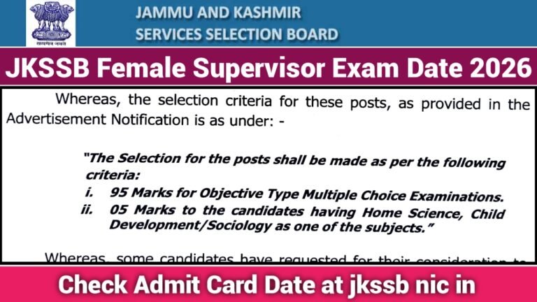 JKSSB Female Supervisor Exam Date 2026 Check Admit Card Date at jkssb nic in