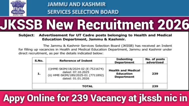 JKSSB New Recruitment 2026 Apply Online for 239 Vacancy at jkssb nic in
